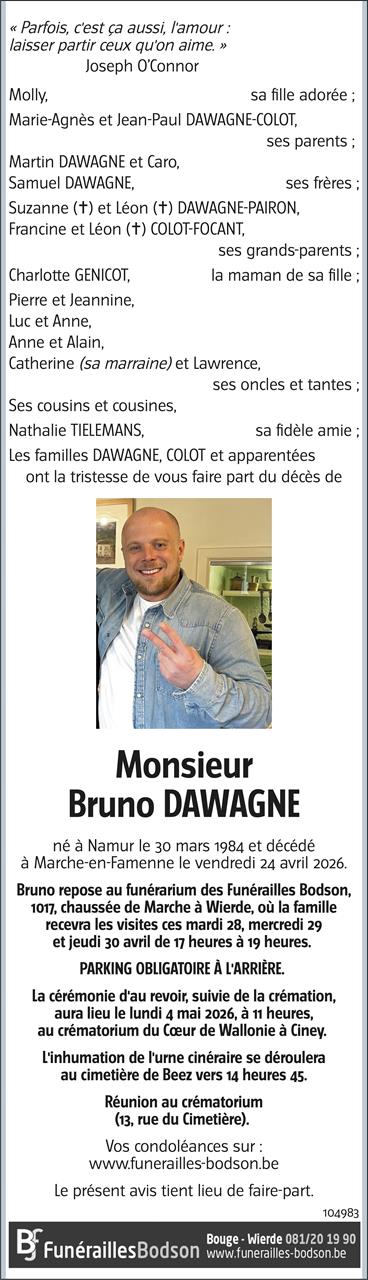 Avis de décès de Monsieur Bruno DAWAGNE