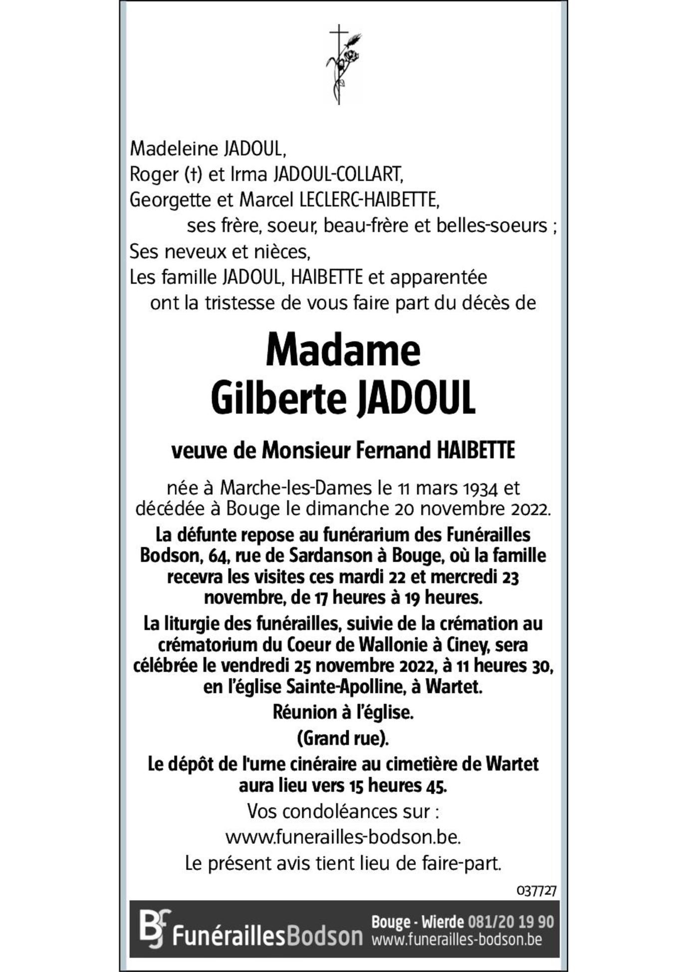 Décédée à Bouge (5004) le dimanche 20 novembre 2022 à l'âge de 88 ans