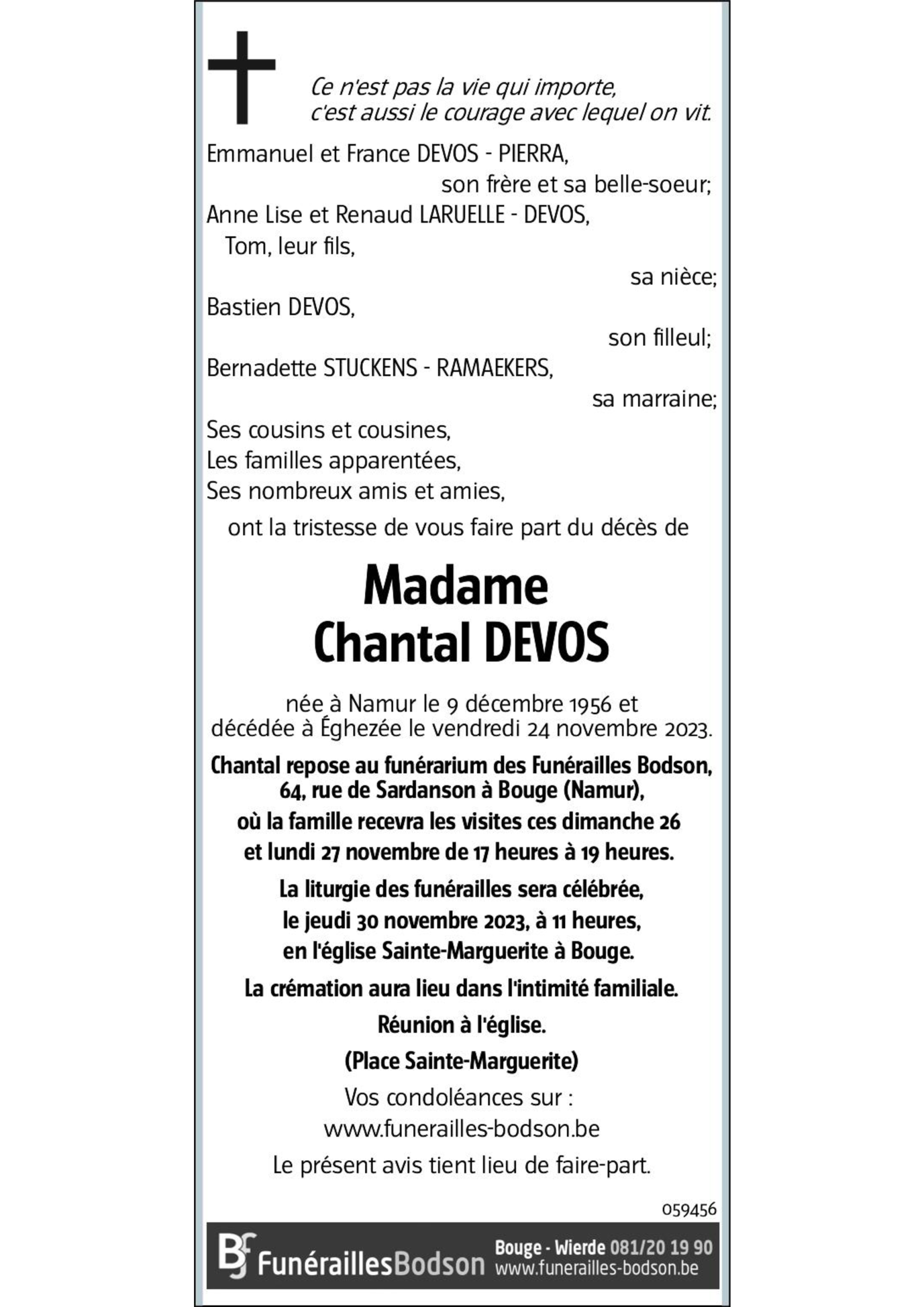 Décédée à Longchamps (Nam.) (5310) le vendredi 24 novembre 2023 à l'âge de 66 ans