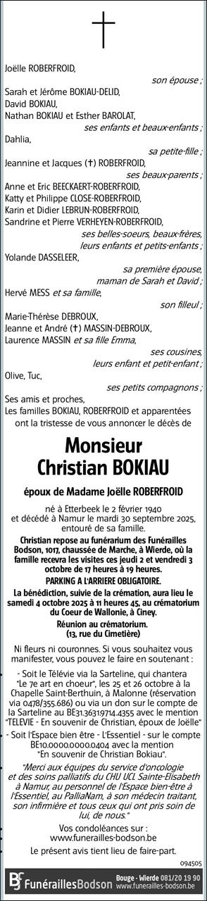 Décédé à Namur (5000) le mardi 30 septembre 2025 à l'âge de 85 ans