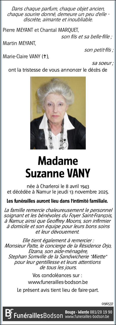 Décédée à Namur (5000) le jeudi 13 novembre 2025 à l'âge de 82 ans