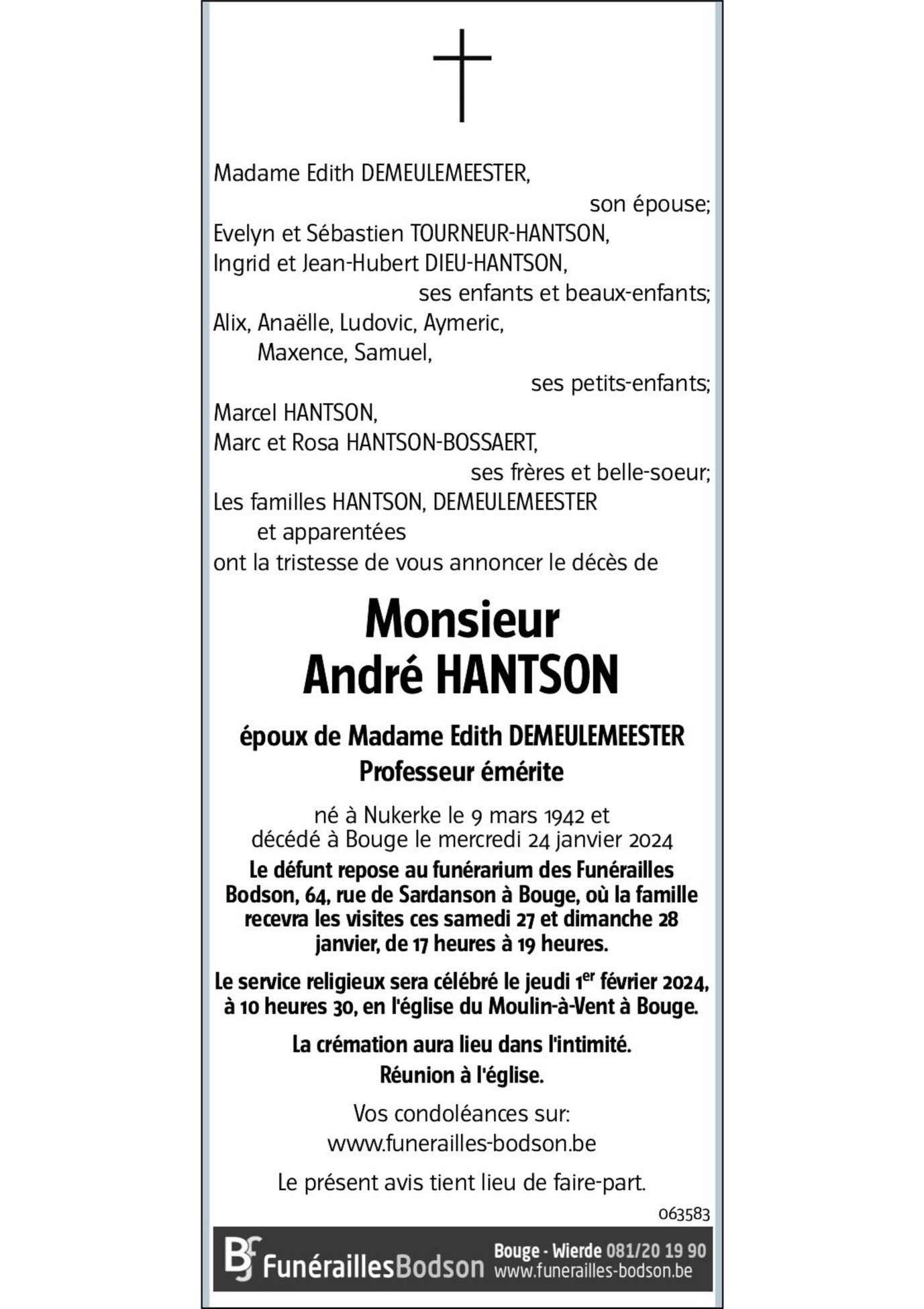 Décédé à Bouge (5004) le mercredi 24 janvier 2024 à l'âge de 81 ans