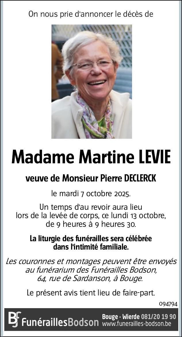 Décédée à Namur (5000) le mardi 7 octobre 2025 à l'âge de 82 ans