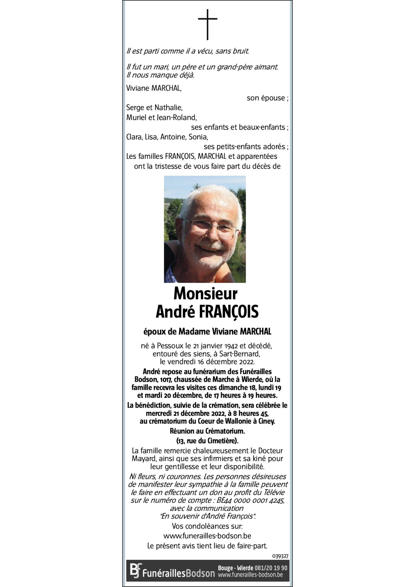 Décédé à Sart-Bernard (5330) le vendredi 16 décembre 2022 à l'âge de 80 ans
