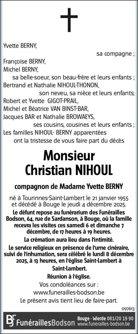 Décédé à Bouge (5004) le jeudi 4 décembre 2025 à l'âge de 70 ans