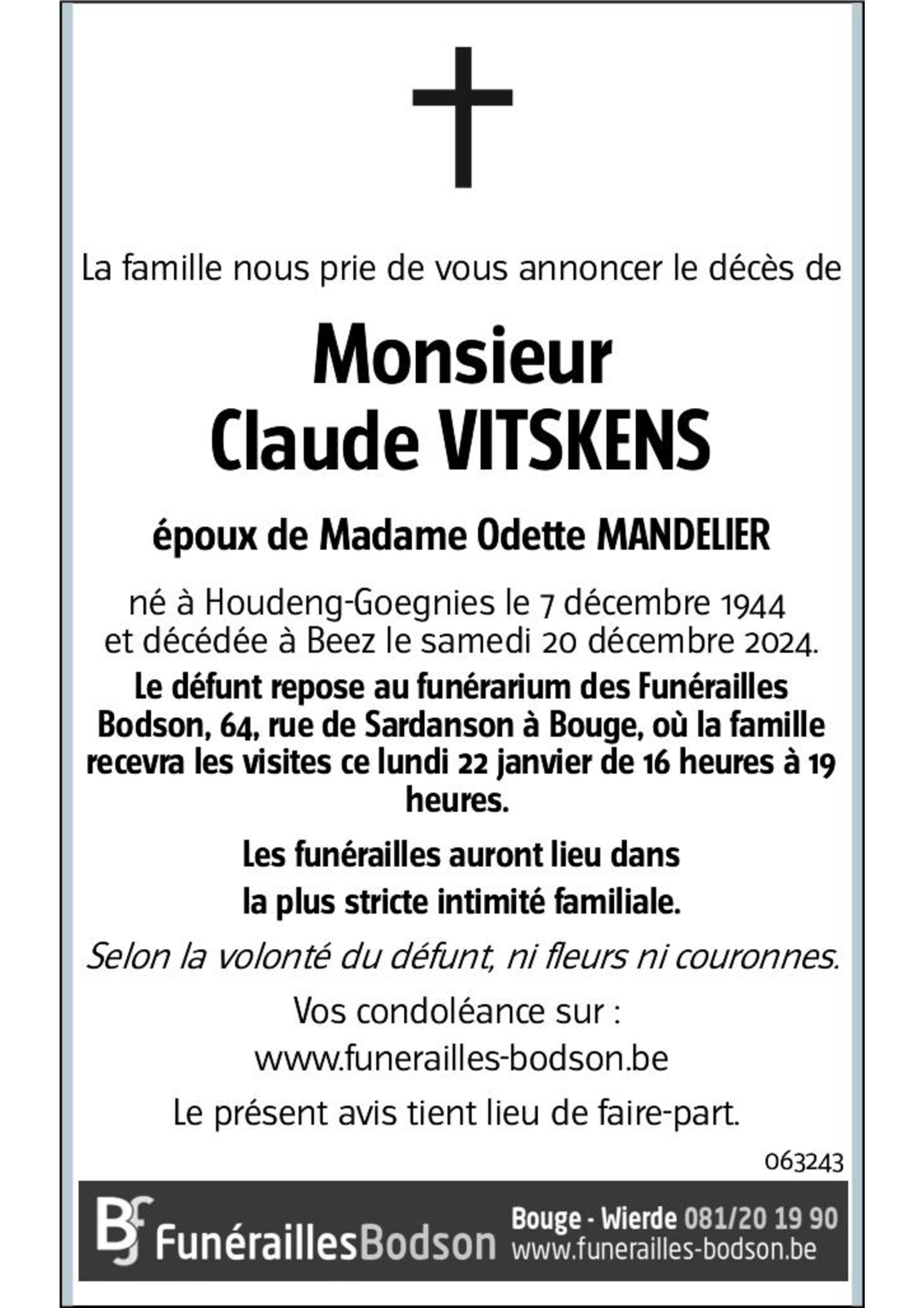 Décédé à Beez (5000) le samedi 20 janvier 2024 à l'âge de 79 ans