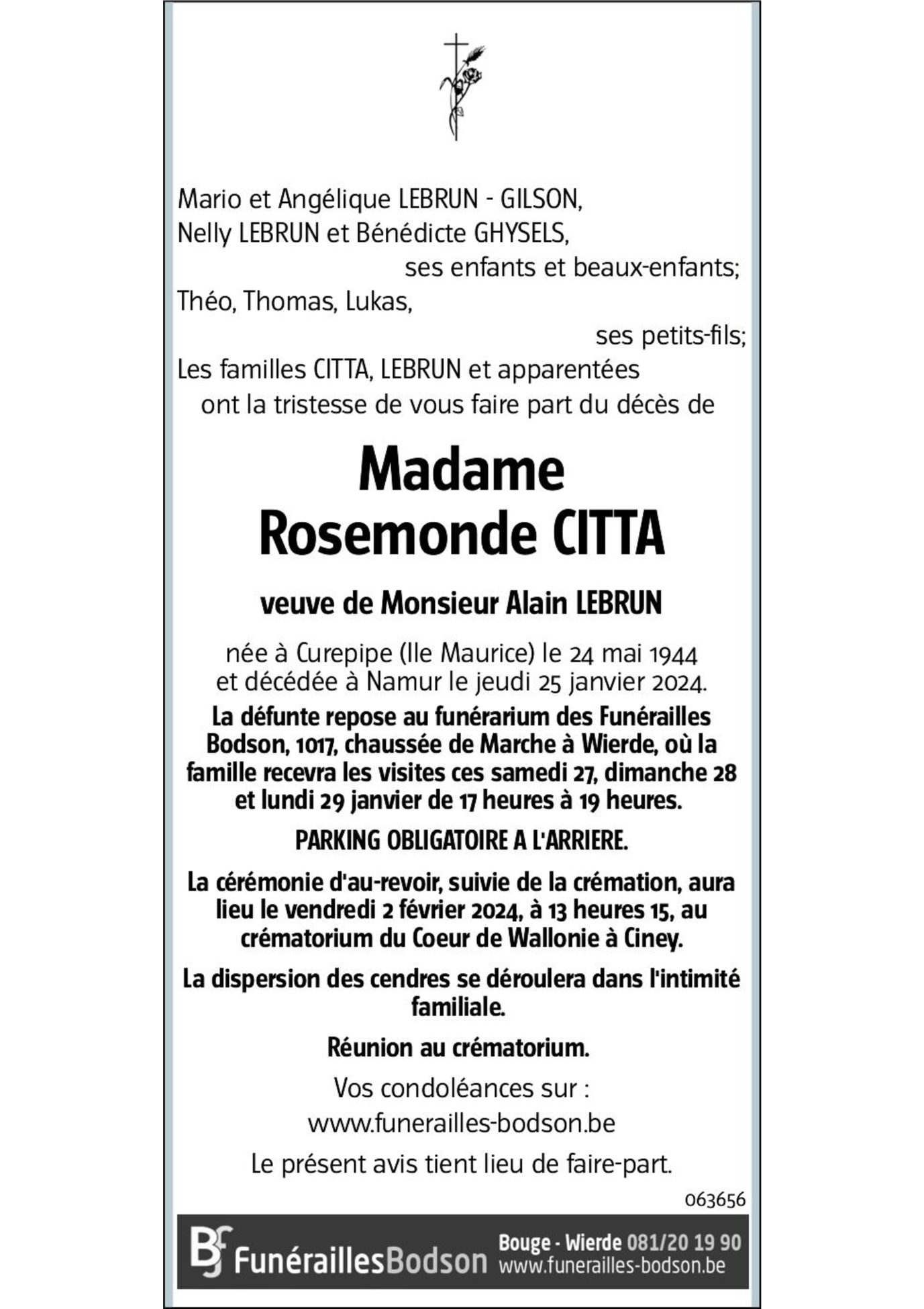 Veuve de Monsieur Alain LEBRUN