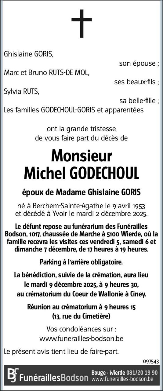 Décédé à Yvoir (5530) le mardi 2 décembre 2025 à l'âge de 72 ans