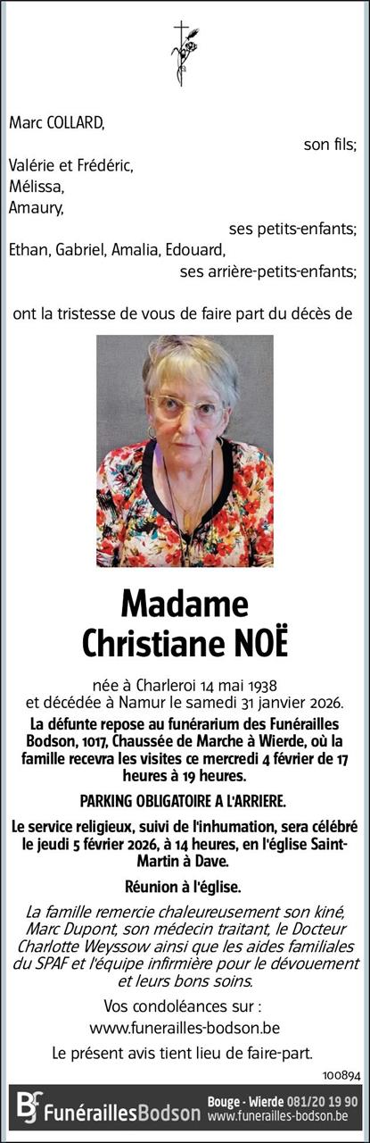 Décédée à Namur (5000) le samedi 31 janvier 2026 à l'âge de 87 ans
