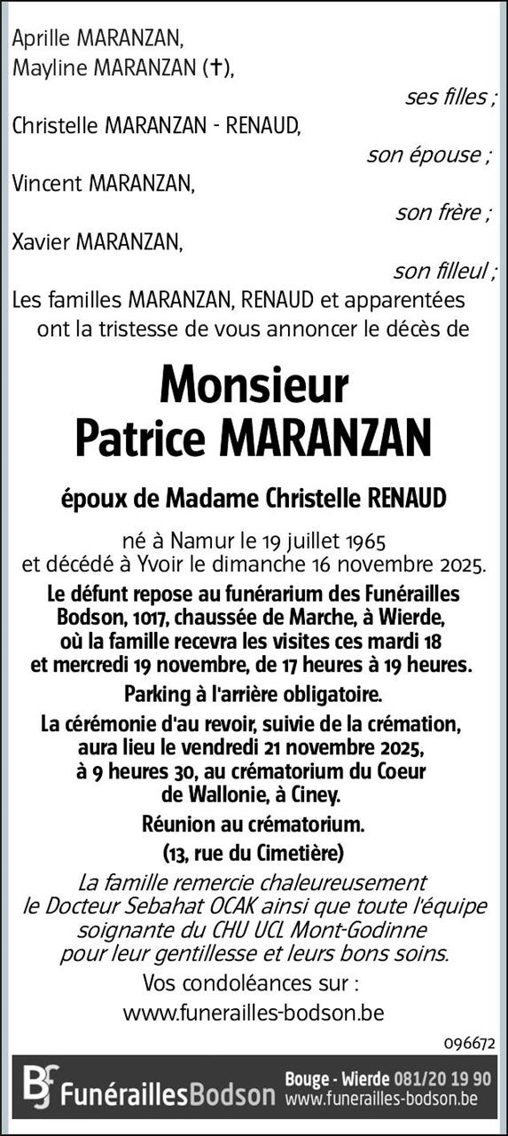 Décédé à Yvoir (5530) le dimanche 16 novembre 2025 à l'âge de 60 ans