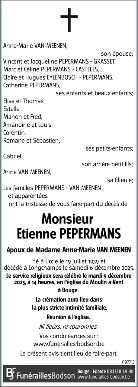 Décédé à Longchamps (Nam.) (5310) le samedi 6 décembre 2025 à l'âge de 86 ans