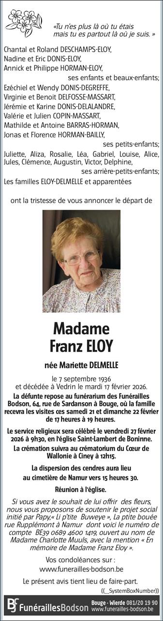 Veuve de monsieur Franz ELOY