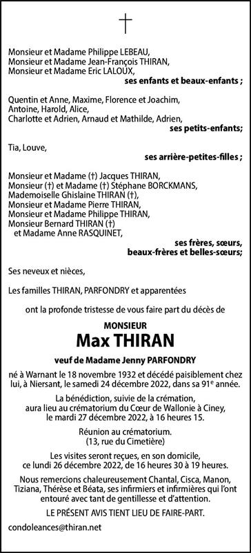 Décédé à Evrehailles (5530) le samedi 24 décembre 2022 à l'âge de 90 ans