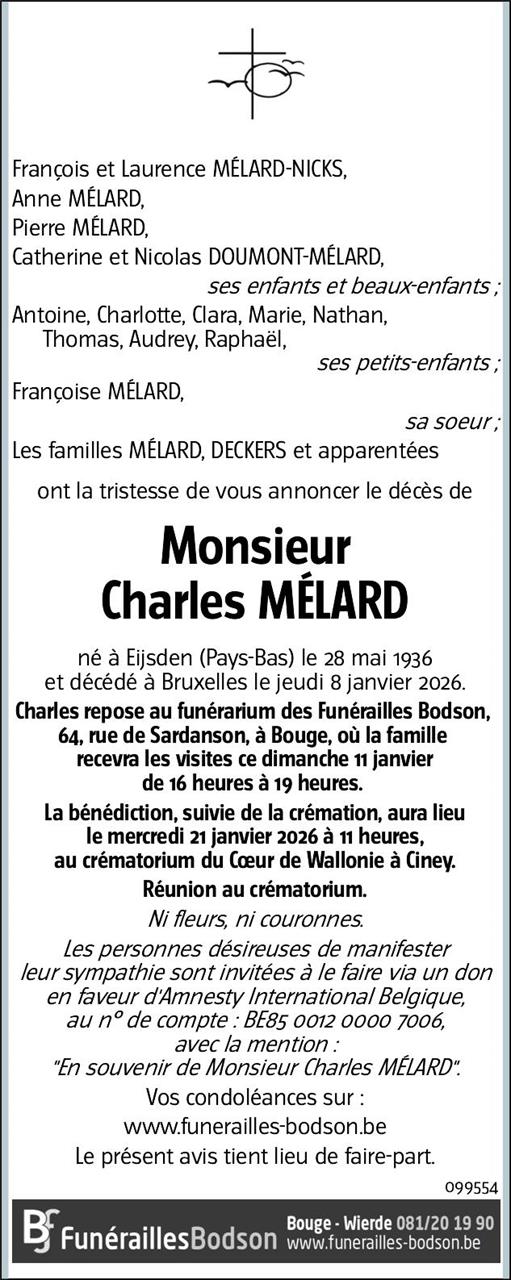 Décédé à Bruxelles (1000) le jeudi 8 janvier 2026 à l'âge de 89 ans