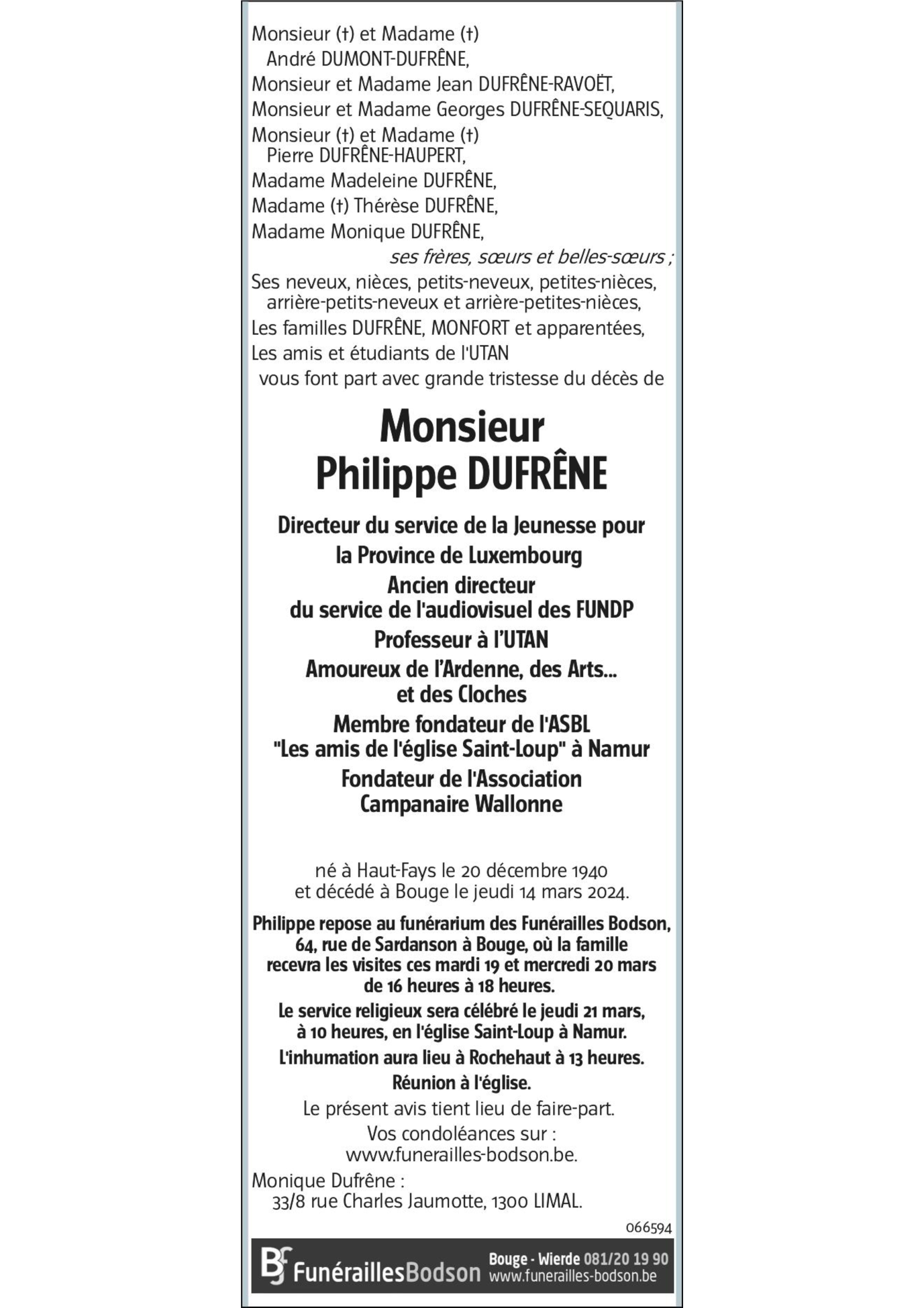 Décédé à Bouge (5004) le jeudi 14 mars 2024 à l'âge de 83 ans